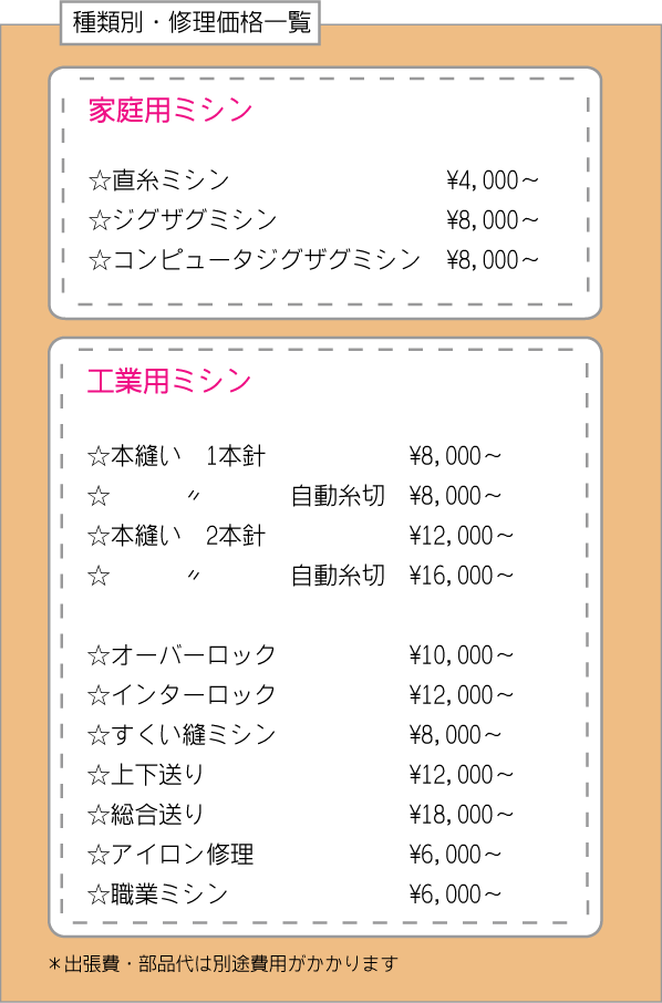 種類別 修理価格一覧
